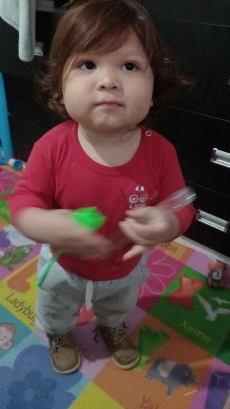 No, mi bebe le gustan las fotos, posar, es muy alegre con su cabello rojizo
